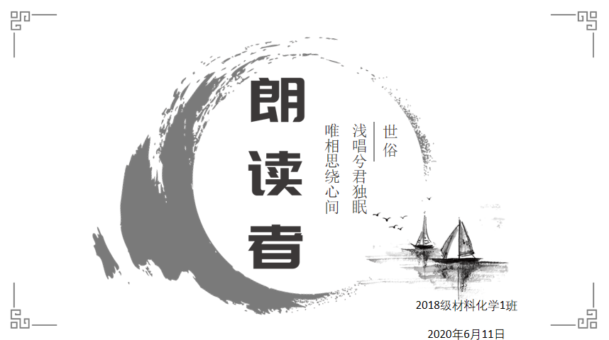本网讯 (18材料化学 黄宁宁)览历史之壮阔,诵英烈之丹心,咏至亲之大爱,展青春之风采。为缓解疫情期间可能给同学们带来的心理压力,丰富班集体精神文明建设,18材料化学1班参考中央电视台推出的《朗读者》节目,特举办同名系列活动。活动目的在于分享同学们居家期间阅读的好书好文,将自己最喜欢的诗歌、短文、故事,用声情并茂的朗读方式给全班师生们分享。
