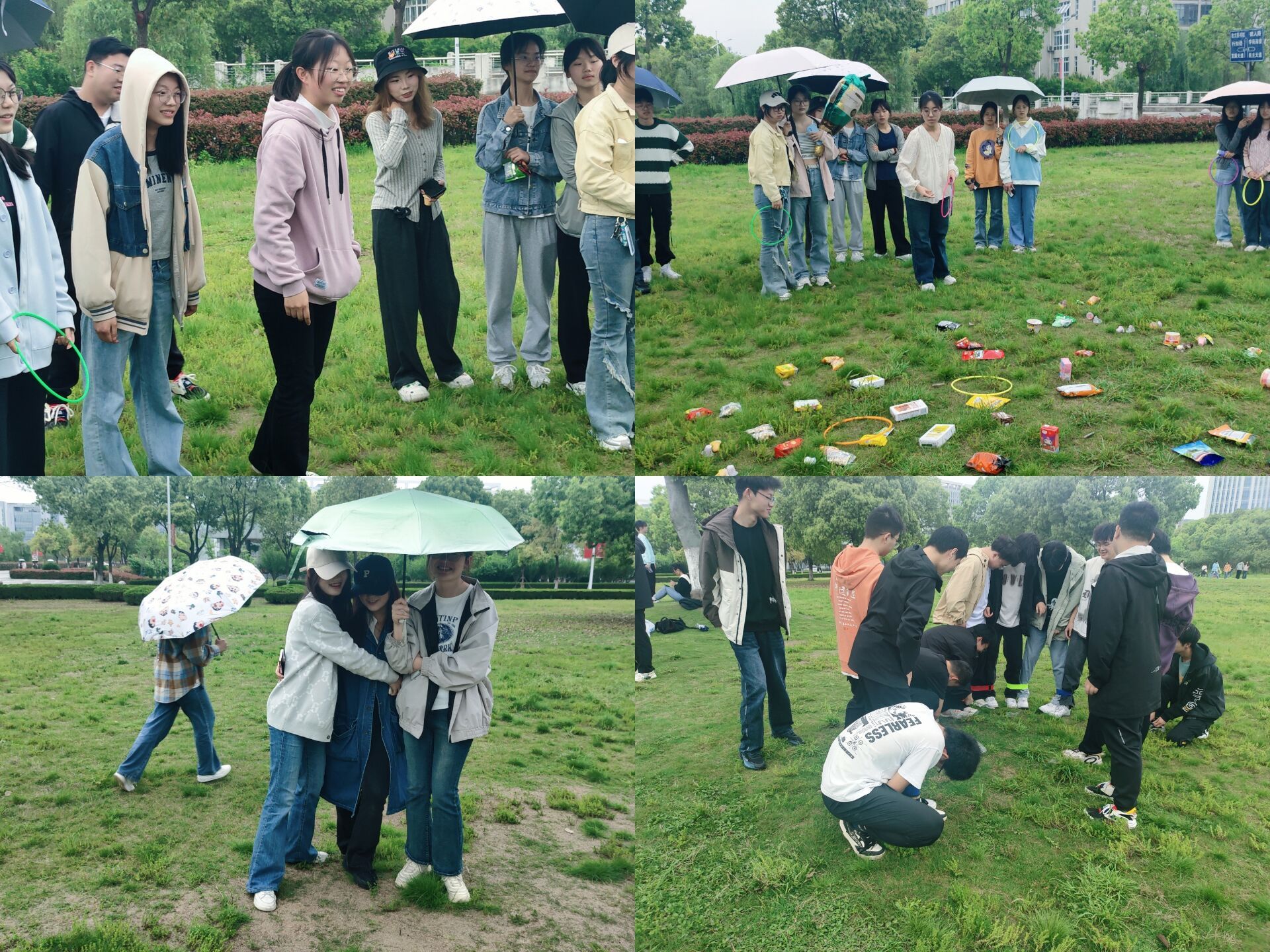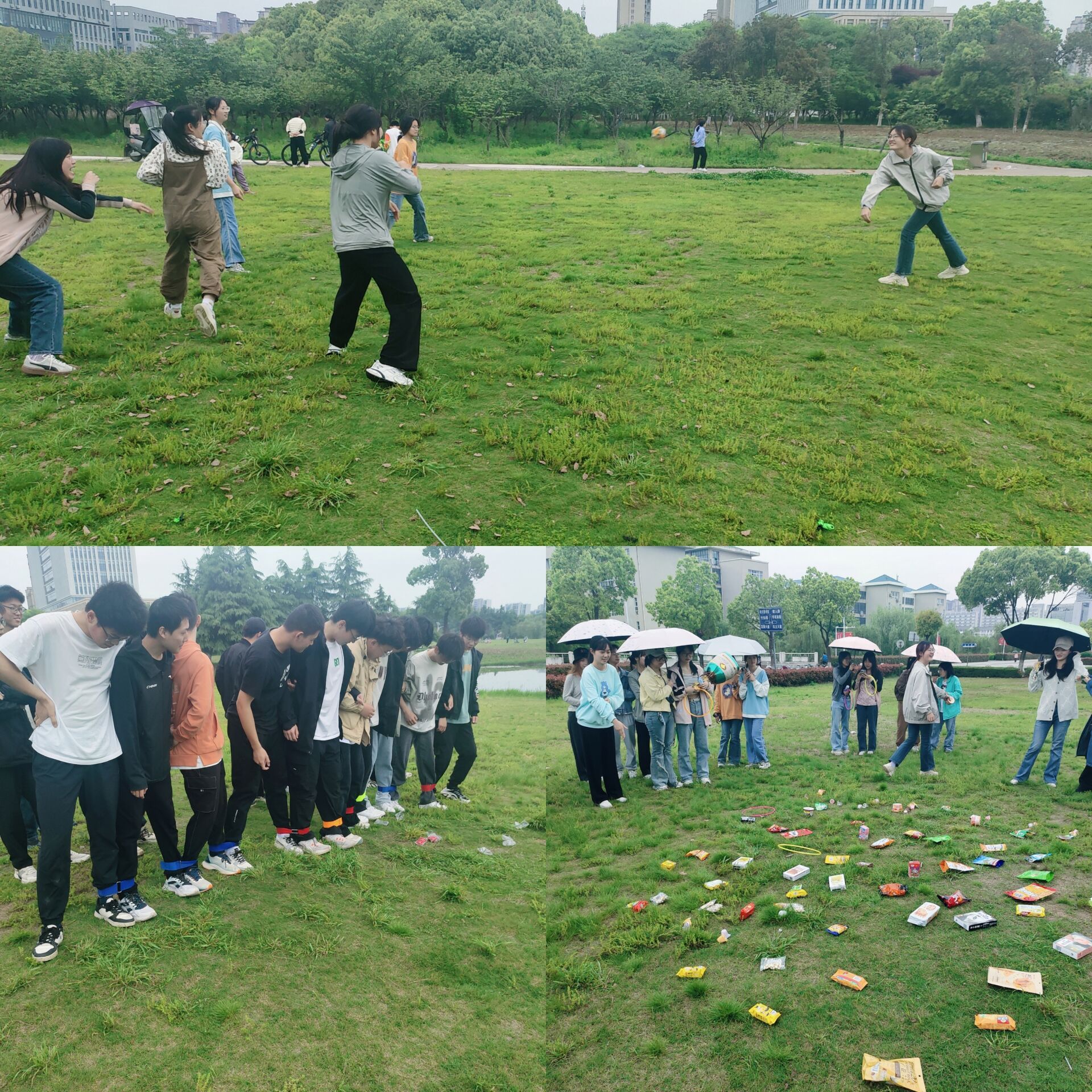 活动当天,即使下着蒙蒙细雨,同学们仍然热情高涨,积极参与各项团队竞技项目。在“两人三足”比赛中,同学们手挽手,肩并肩,共同完成了这项考验默契与配合的任务,每一个参与者都全情投入,赢得了阵阵掌声。在“丢沙包”环节中,同学们的欢声笑语响彻津南草坪,你躲我闪,出其不意,在锻炼身体的同时,也愉悦了同学们的心情。此外,“套圈赢零食”更是将现场气氛推向高潮,速度与激情在此刻得到了完美展现,同学们纷纷表示“我要那个锅巴!”“我今天必赢那个麻薯!”这个游戏也成为了同学们心目中的最佳环节,同学们的汗水与欢笑交织,彰显了青春活力。