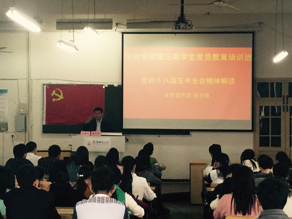 詹剑峰老师以一名老党员学习十八届五中全会精神的感悟和体会为全体党员带来的一场不一样的党课学习交流体验,把原本单调的精神解读讲演的生动有趣。各位学员纷纷表示会在今后的学习生活里要加强对于十八届五中全会精神的学习和认知,在生活学习和工作中进步宣传和贯彻全会精神,争做一名思想行动同党中央保持高度一致的合格党员。