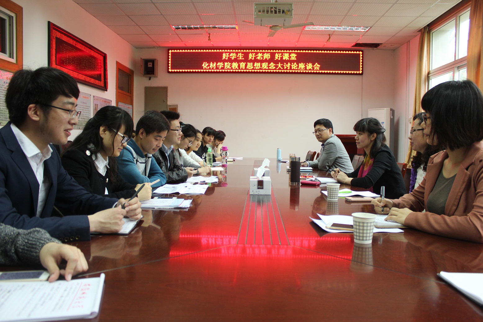 会上,各专业各年级学生代表就心中认为的“好学生、好老师、好课堂”纷纷发表看法。他们认为“好学生”要注重德智体全面发展,要理论知识与实践能力协调发展,要善于主动求知自律自强成人成才,要做普通同学成长发展的“航标”。“好老师”不仅要有过硬的专业知识,还要有教人求真、为人师表的理想信念和品格魅力,他们还希望老师要多走进学生中间、多与学生交流互动。学生心目中的“好课堂” 需要老师和学生共同维护营造的课堂,是教学相长的、是学习有效的、是开放民主的、是师生互动的课堂。学生代表积极发言,畅谈观点,座谈会氛围轻松愉快。会议还听取了高年级学生骨干对2016年暑期社会实践选题和组织工作的具体建议。