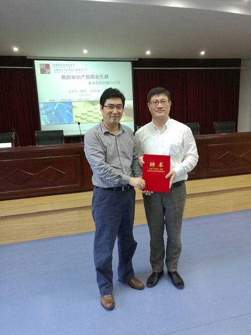 院长高峰为薛总颁发了“兼职教授”聘书。讲座伊始,薛总阐述了科技创新与专利的紧密关系,并介绍了专利的多个特征属性。他在谈及产品的专利开发思路与策略时指出,产品开发就好比化学领域的科学研究,要认真对待其中的每一个环节,有时候惊喜也许就隐藏在副产物之中。随后,薛总结合他“由化学到法律、由色情网站