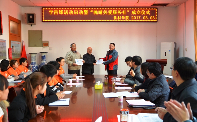 成立“晚晴关爱服务社”给予充分的肯定,希望广大志愿者能及时了解广大离退休教师的切实困难,并提供力所能及的帮扶;接着校团委副书记刘长生向志愿者队长授予队旗,他强调广大学子服务老师要用心、用情、用力,帮扶工作要落小、落实、落细;学生志愿者代表也做了发言,她代表大学生首批志愿者表达做好关爱服务工作的信心和决心 。