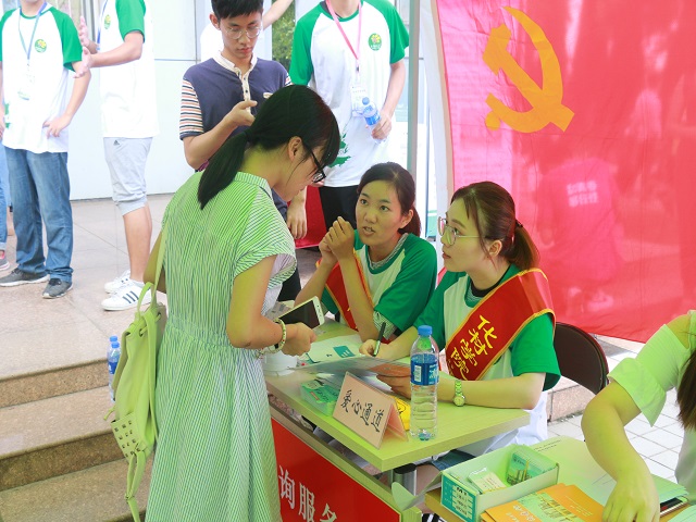 的志愿者们,报名点、寝室来回奔走的绿色身影构成校园里最美的一道风景。志愿者们尽管大汗淋漓,仍然热情不减,引导新生报到、帮忙拎行李、领路寻找宿舍,新生与家长脸上真诚的笑容就是对志愿者们最好的褒奖。值得一提的是,色情网站