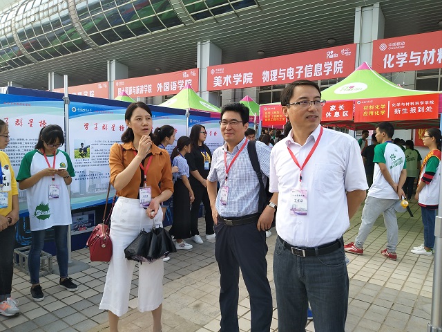 领导班子成员纷纷亲临现场,探望迎新的老师和志愿者们,并详细询问现场迎新情况,为迎新工作提出宝贵意见。