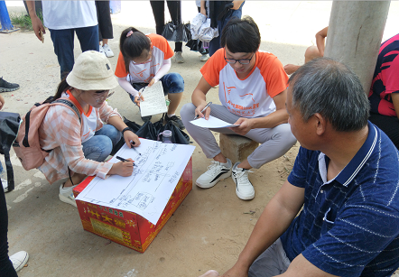 下午,为准确掌握崔集村村民对日常生活用水认知和满意度情况,队员们到附近的崔集村进行调查走访并填写问卷。队员们在村口就遇到了一些乘凉的叔叔阿姨们,在征得他们的同意后开始询问有关周围水质的问题。从一位张大叔口中了解到,崔集村的水质情况并不乐观,长期饮用水质硬度高的水会导致胆结石、肾结石等健康疾病,村民吃喝用水必须用净水器处理后才可以使用。虽然紧邻淮河,但因无法抽水,农业灌溉一直都是由天气决定,所以这里的村民收入并不高。在此次走访中遇到一些年纪较大的村民,团队队员张广浩细心地用方言询问村民,得到村民一致好评。