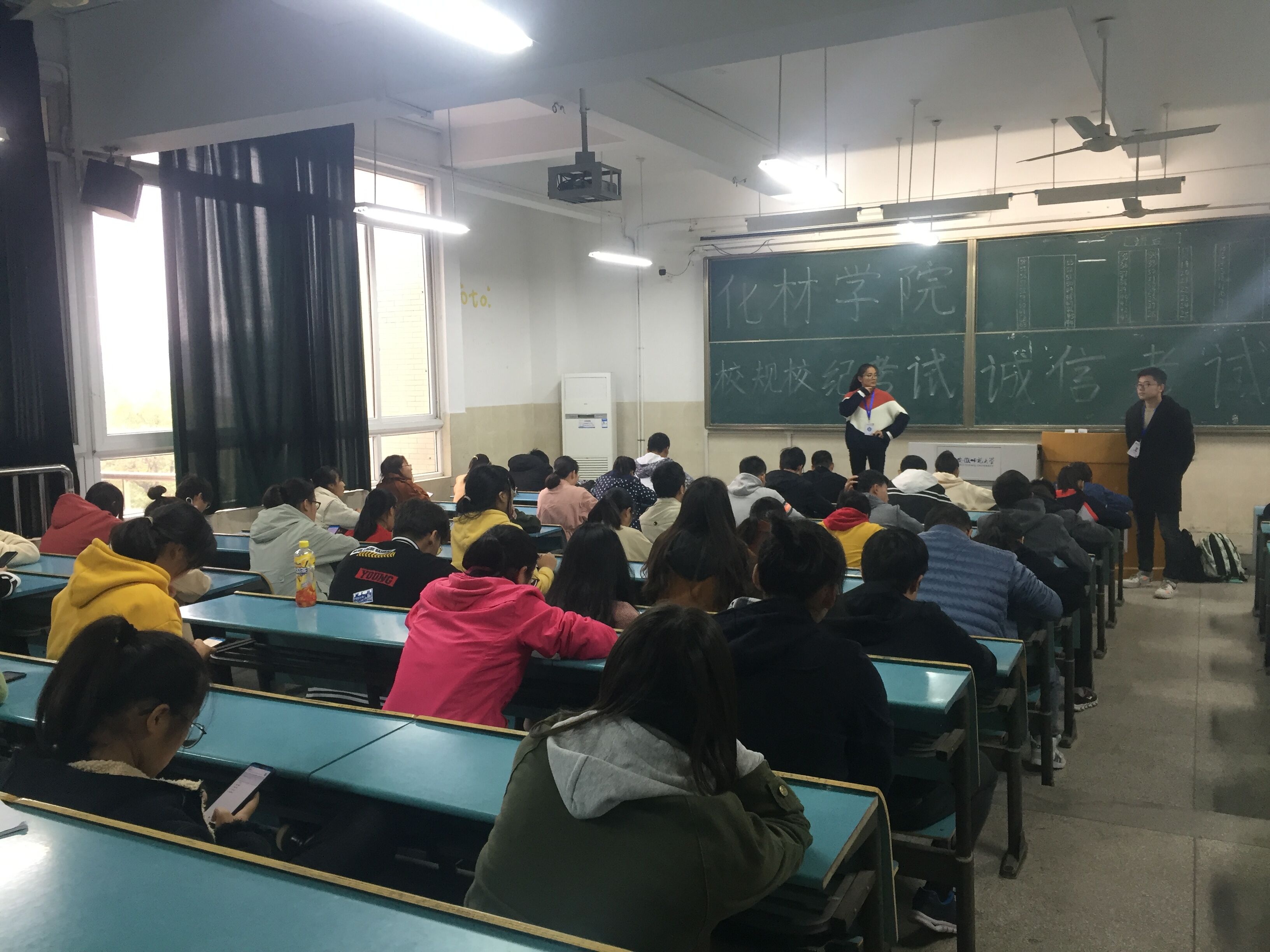 充分的备考准备、规范的考试行为、合理的监考安排体现了化材学子优良的学风、严谨的考风以及认真负责的态度,向全校展示着化材学子优秀的精神风貌。相信本次校纪校规考试会帮助2018级新生树立正确的纪律意识、制度意识,并增强自觉性,营造良好的学习氛围,杜绝违纪违规的现象。