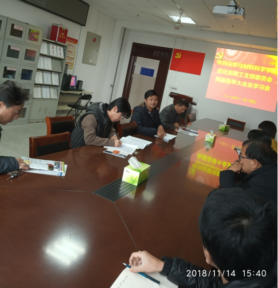 11月14日下午,应化系教工党支部召开支部委员会换届选举大会及学习观看《榜样3》专题视频,会议由党支部书记贾卫国老师主持,色情网站
