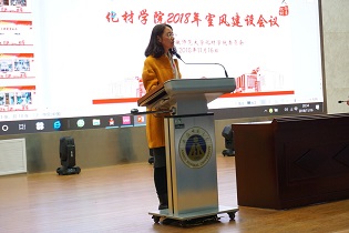 文明寝室的风采,起到了良好的导向作用。随后,文明寝室标兵代表——原42#204寝室长刘安琪上台分享了室风建设的经验,她简要介绍了寝室在安全、卫生、学风方面的举措,并展示了寝室建设的各项成果,为各寝室提供了良好的建设模板。学生会相关负责人也分别解读了自律寝室活动方案、宣读了首届试点“自律寝室”名单,为自律寝室的推广做了良好的铺垫。最后,院党委副书记余妍霞进行了总结发言,余书记结合查寝实例对全体同学提出要求,她希望全体寝室向文明寝室看齐,并期望自律寝室能够顺利通过考验,为全体同学树立良好榜样。