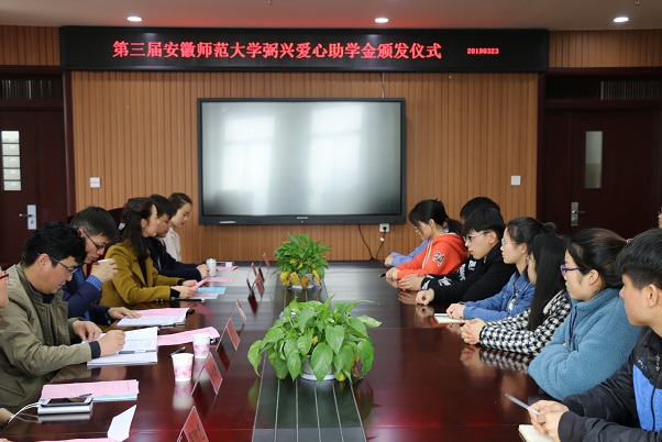 向弼兴爱心助学金的捐赠人薛琦先生不辞辛苦从上海赶到芜湖带来的精神支持表示真挚的感谢,他也希望同学们要勇于学习薛琦先生敢于创新创业的拼搏精神,在生活和学习中不忘初心,立志成才,报效祖国。