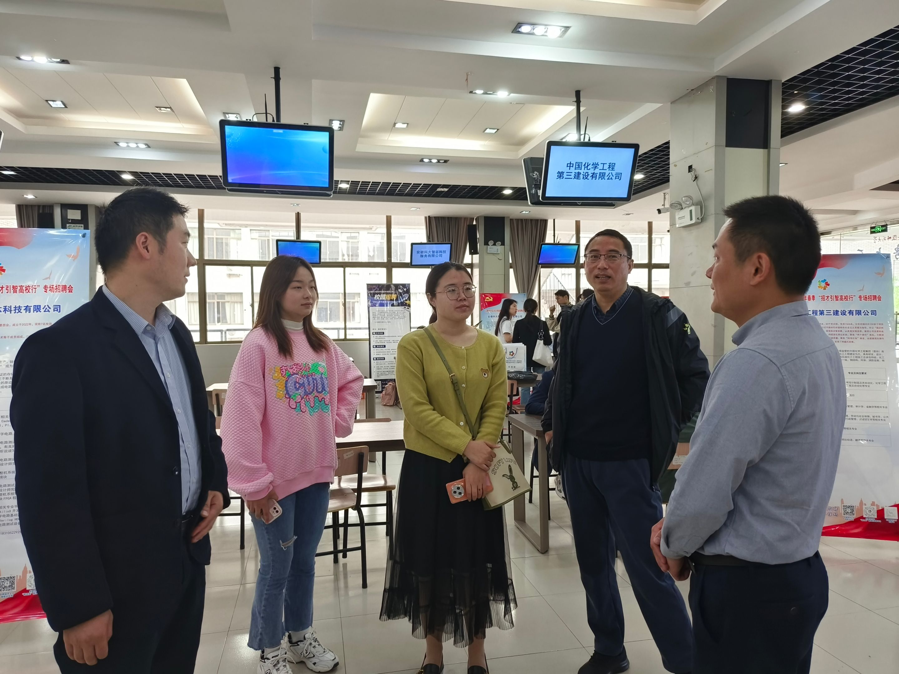 领导班子多次前往会场与用人单位、毕业生进行亲切交谈,会场气氛十分热烈。