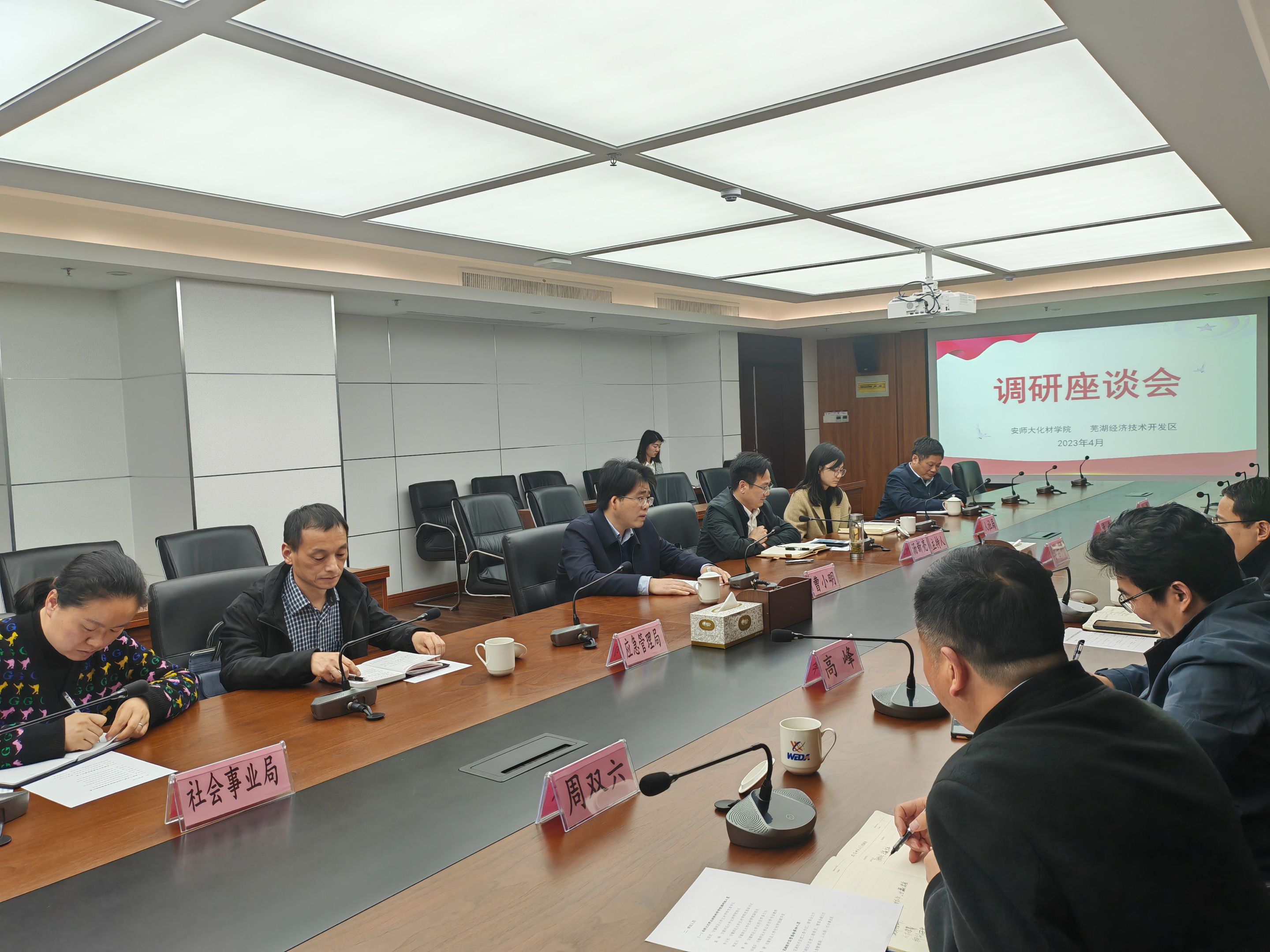 实地调研结束后在经开区管委会召开了调研座谈会,芜湖市经开区管委会主任曹小明、副主任汤新亮、区人社局、区社会事业局、区应急管理局负责人参加座谈。色情网站